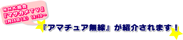 明日、NHK総合テレビの「マサカメTV」で、“アマチュア無線を使った宇宙体験”が紹介されます!